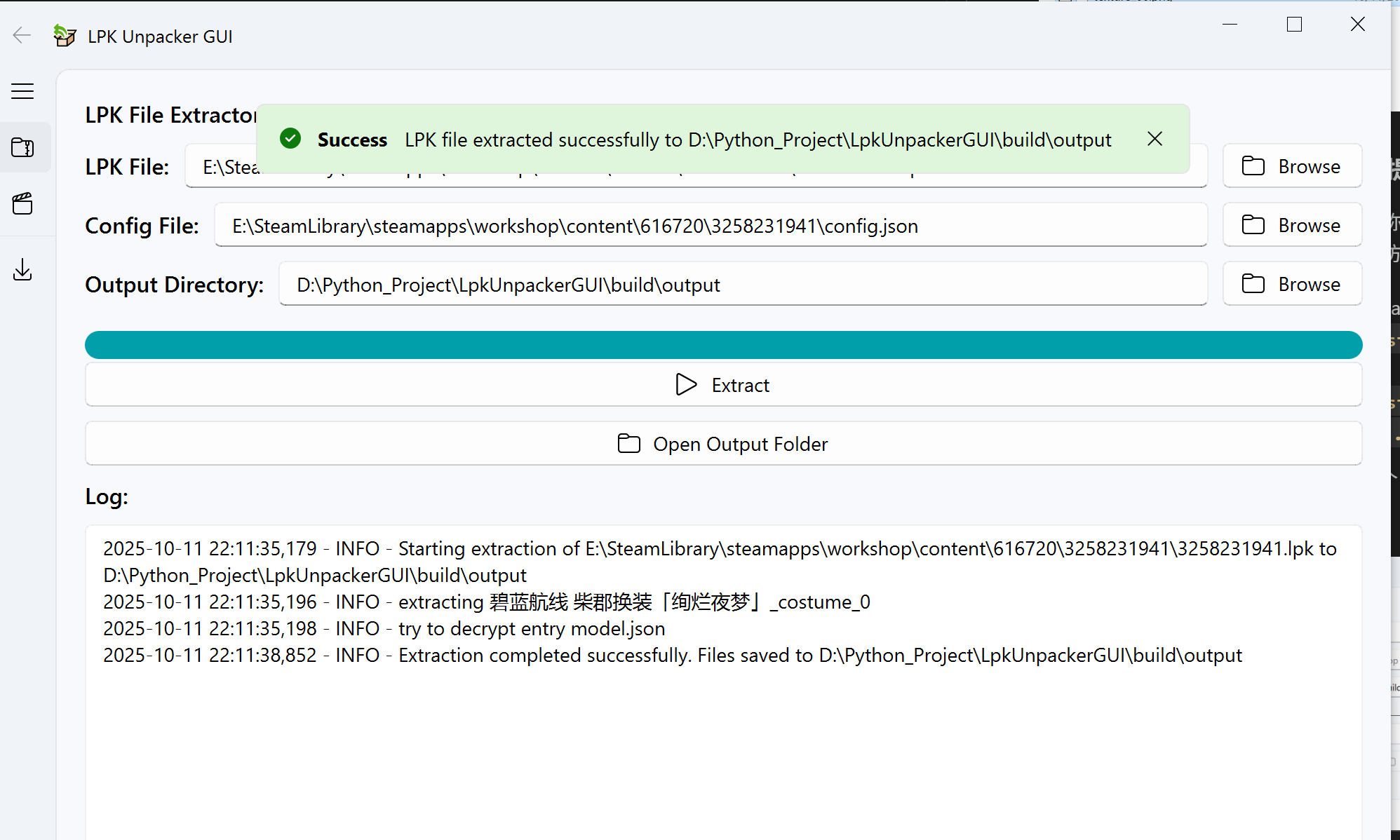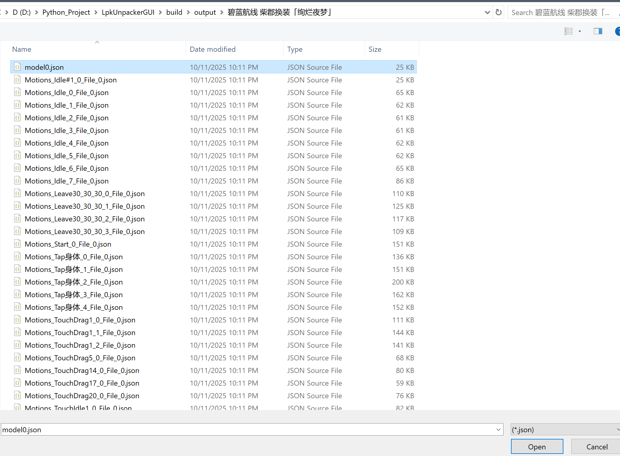 第二步:使用 LpkUnpackerGUI 提取 Live2D 模型文件