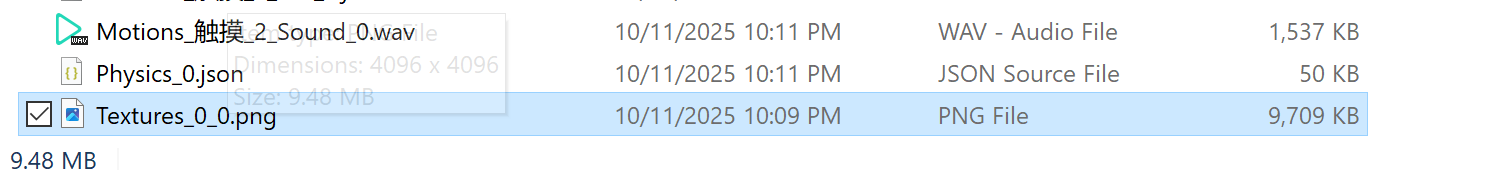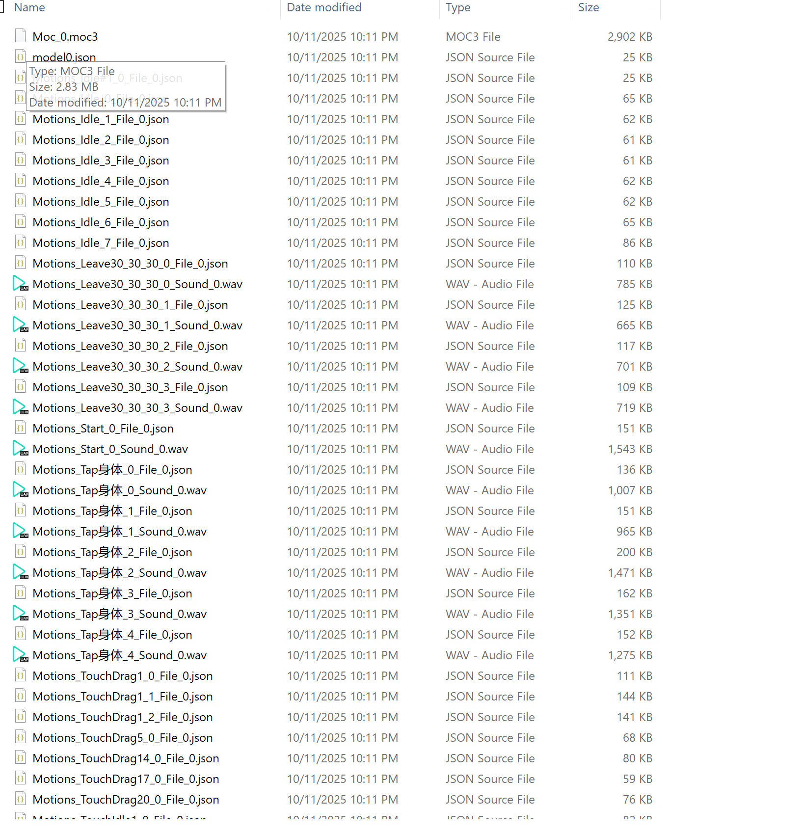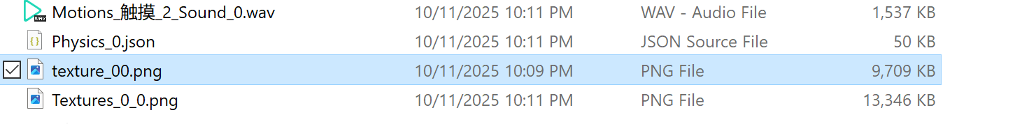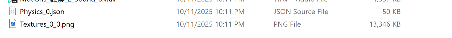 解包后,你会在输出目录中得到一个文件夹,里面包含了模型的 model0.json 文件、贴图文件(通常是 .png 格式)以及动作配置文件等等。