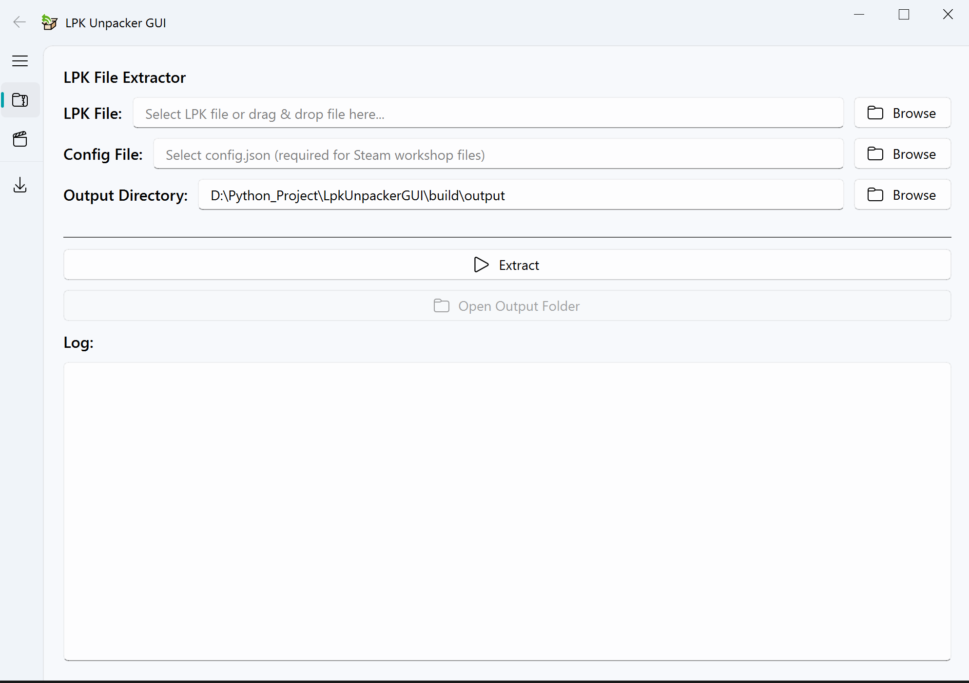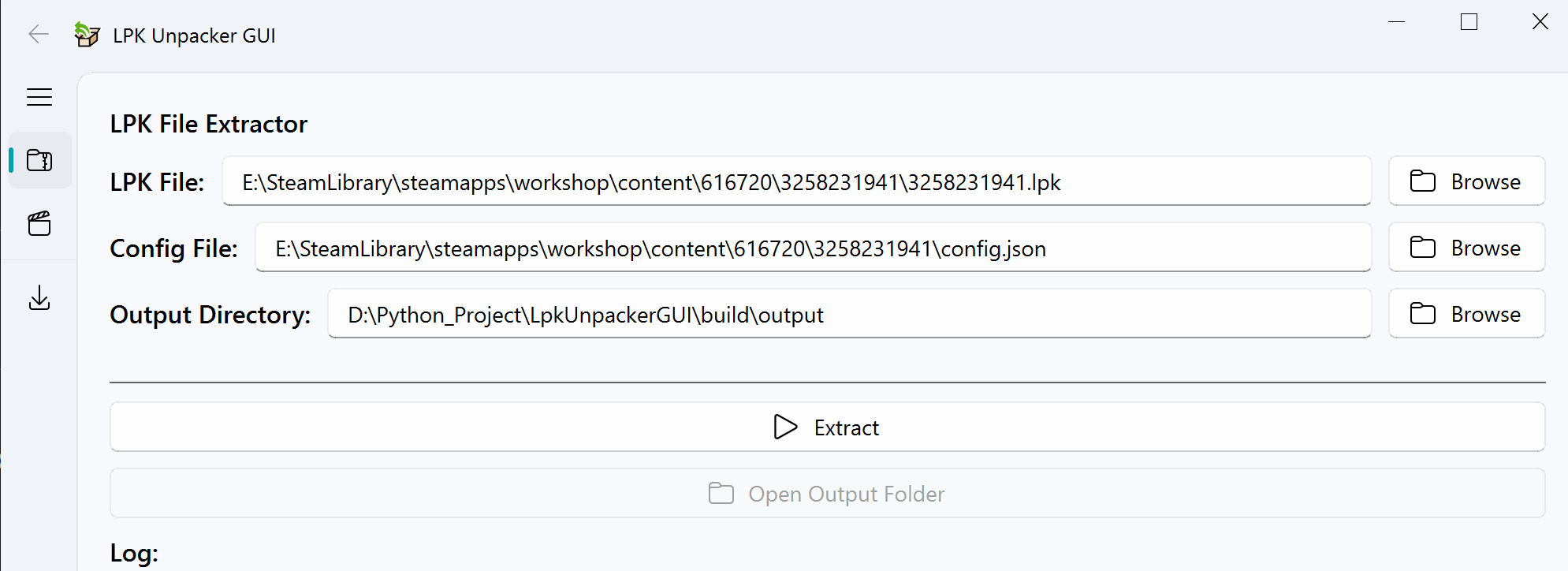 .lpk文件和config.json文件拖入程序窗口,或者手动选择路径。