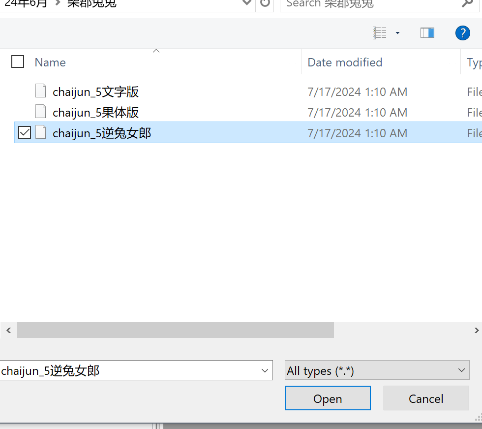 - 你想要魔改的资源: 比如别的大佬的live2d角色文件(一般为无后缀的unity文件,此教程以”chaijun_5逆兔女郎”为例)。